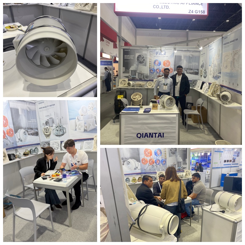 Diadakan di Dubai, hab perdagangan global yang penting, pameran itu menarik pelbagai jenis profesional industri, pengedar dan rakan kongsi yang berpotensi. Gerai Shengzhou Qiantai berfungsi sebagai pusat tumpuan, mempamerkan barisan produk teras syarikat, termasuk kipas ekzos berkecekapan tinggi, kipas pengudaraan, kipas paksi, kipas industri dan motor sokongannya. Paparan dan demonstrasi di tapak menyerlahkan prestasi mantap dan aplikasi serba boleh produk ini, yang memegang pensijilan daripada Pusat Pensijilan Kualiti China.